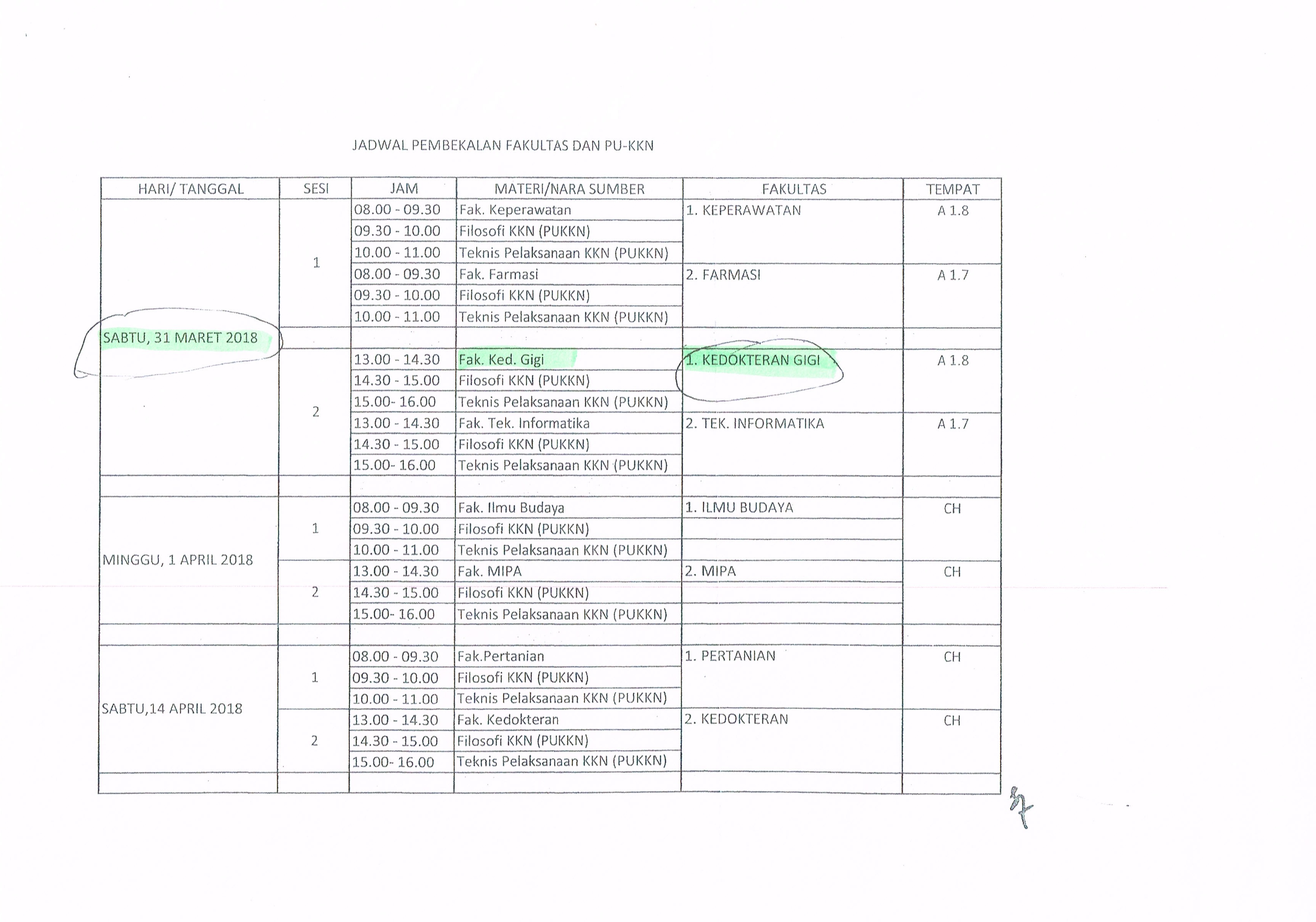 Jadwal Pembekalan Fakultas dan PU-KKN